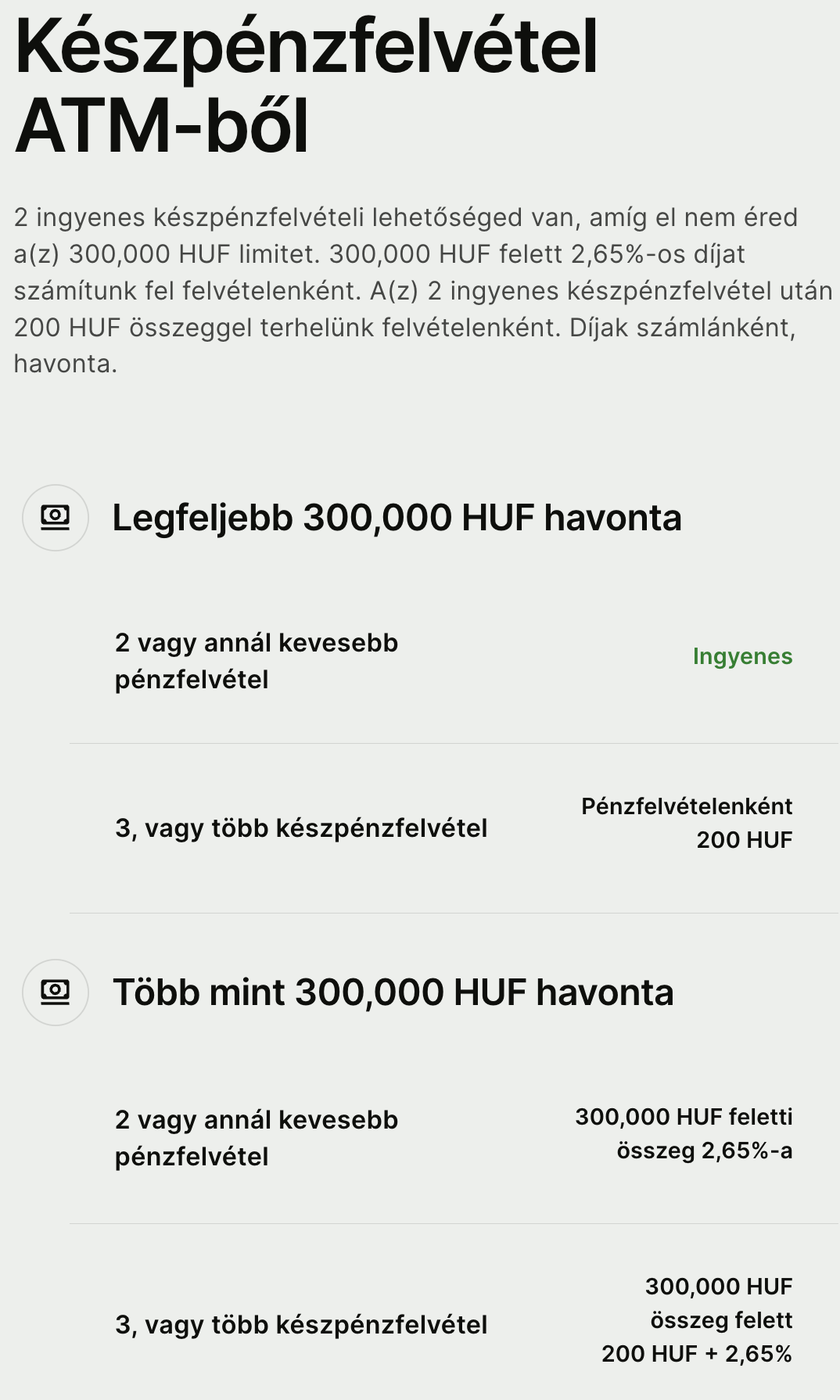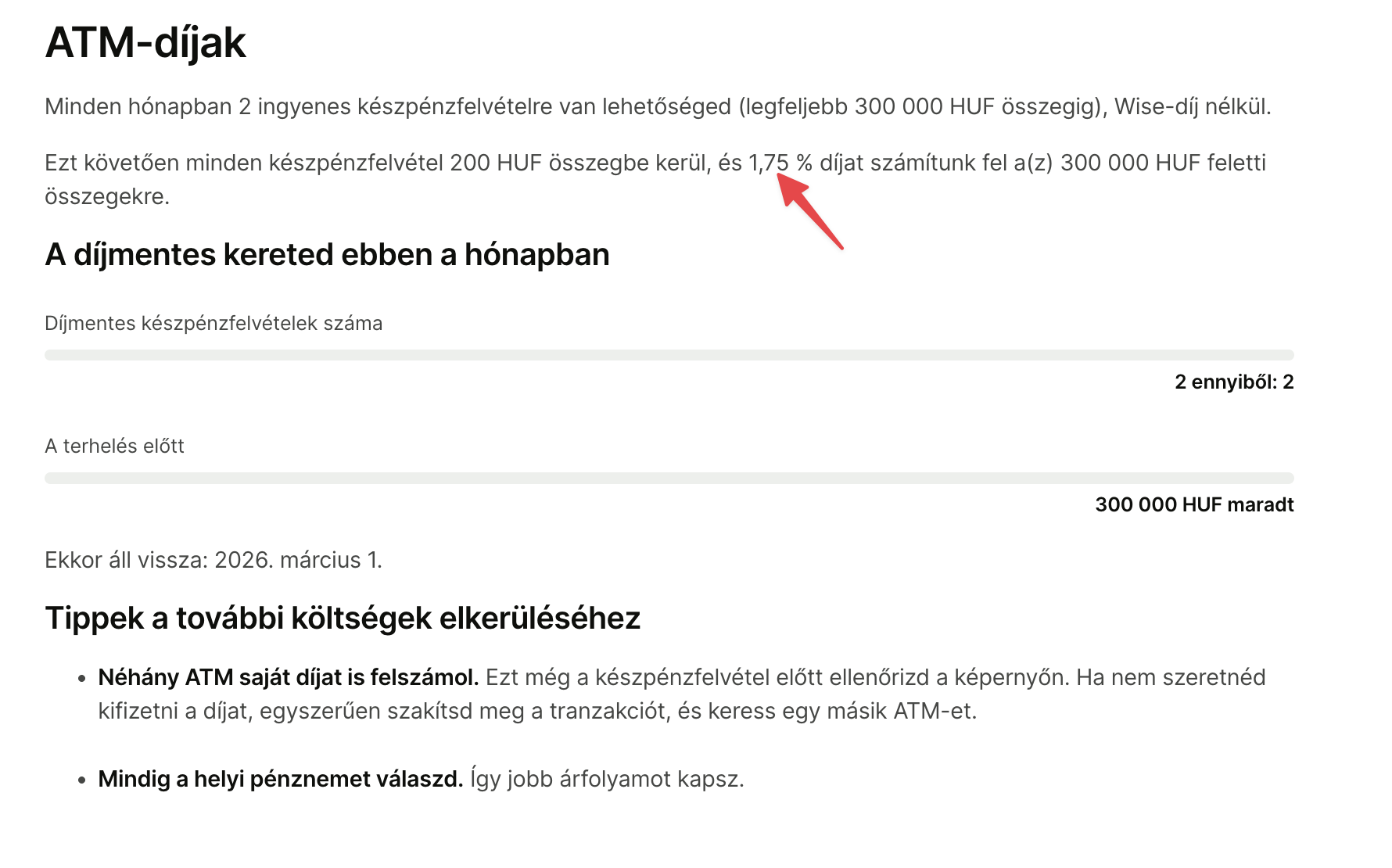 Igaz a Wise nem számít fel díjat egy bizonyos összegig, de az ATM, ahol a készpénzt felveszed, az külön díjat számíthat fel. Ezt az ATM-ek legtöbb esetben előre jelzik.