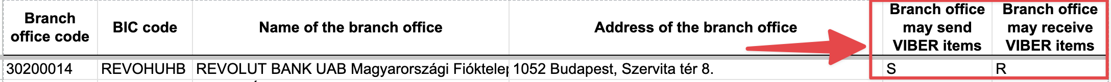 - R (Receive): A fióktelep fogadhat VIBER tranzakciókat.
