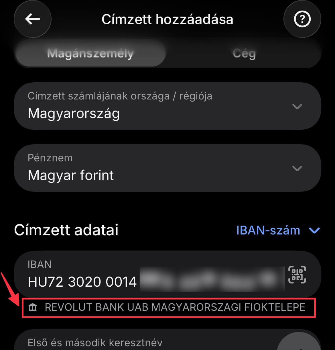Ha például a Revolutban felviszünk egy ilyen kezdetű számlaszámot, akkor itt már a rendszerük ki is jelzi a bankot, ahova utalnánk: